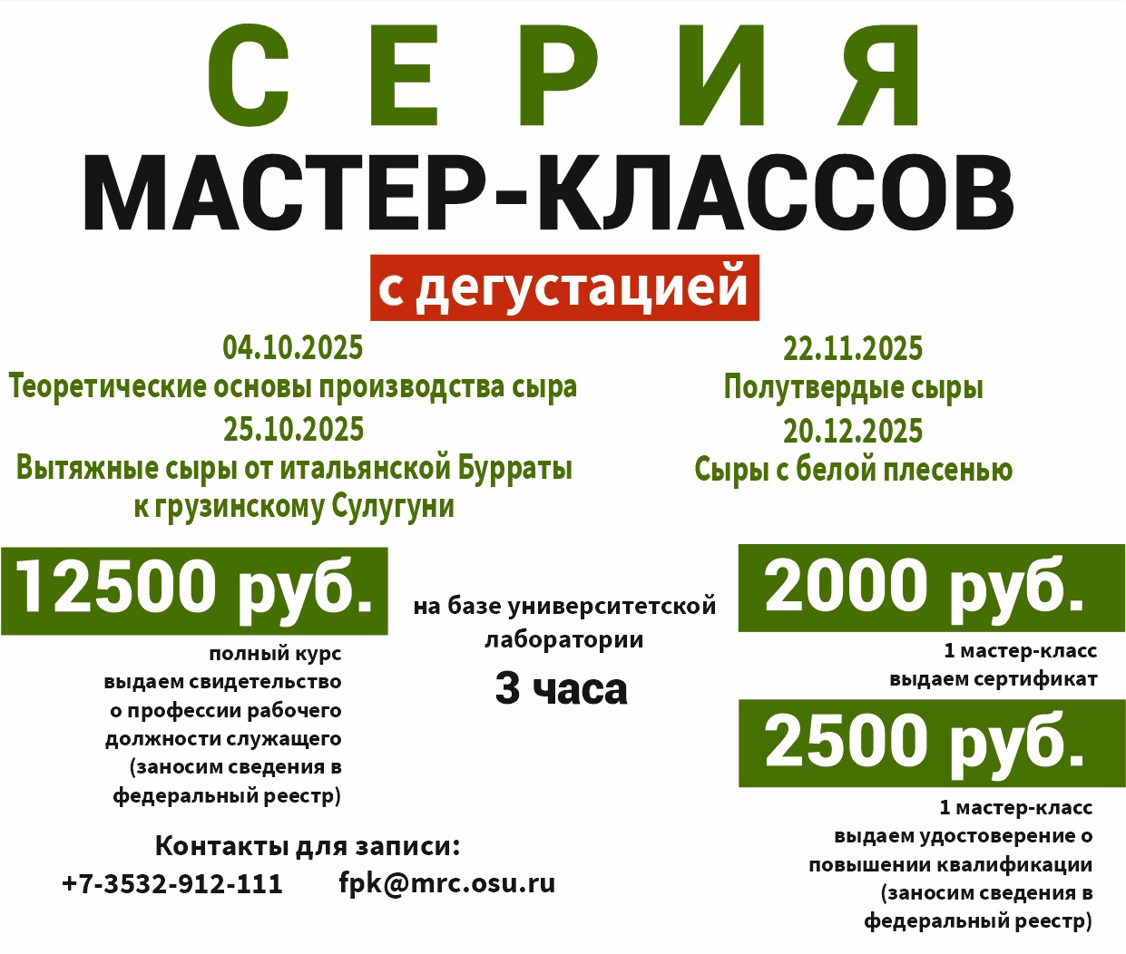 Серия мастер-классов рассчитана на широкую аудиторию, включая выпускников и всех заинтересованных жителей Оренбуржья. В рамках занятий участники освоят технологию изготовления сыров и примут участие в дегустации готовой продукции.